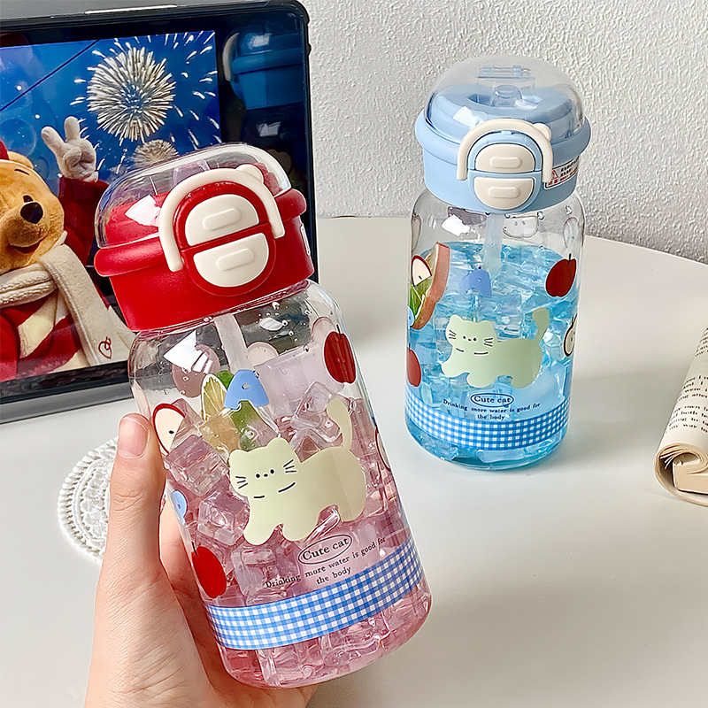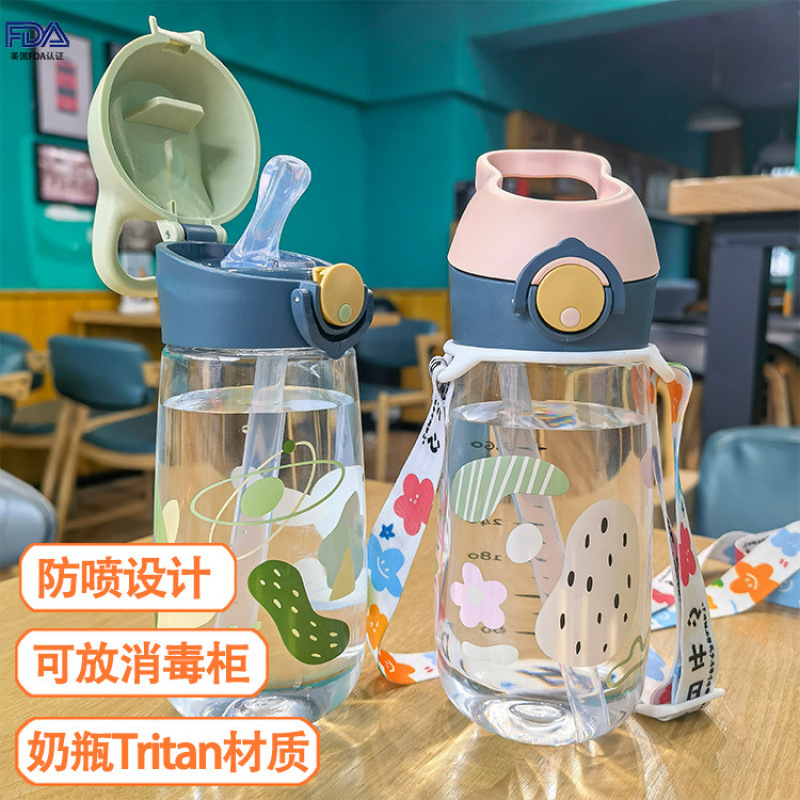 子供のプラスチックカップ幼稚園ポータブルウォーターカップ女の子のための大容量かわいい漫画ストローカップ夏の新しい落下防止