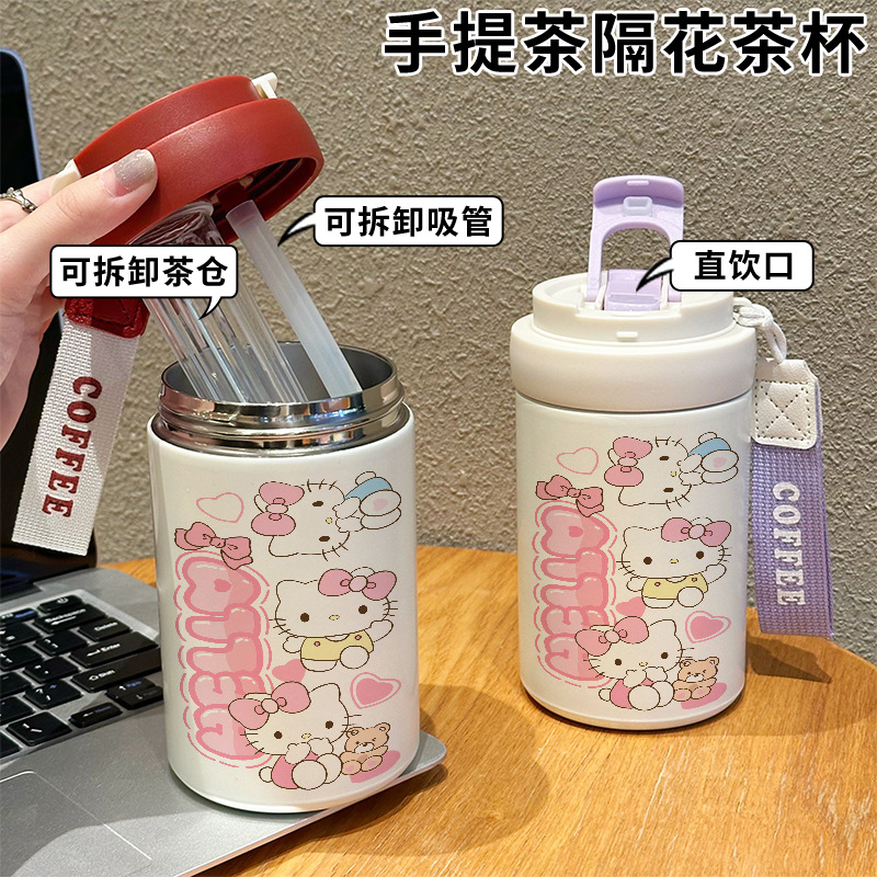 サンリオ子供公仔カップ保温カップ学生は斜めに大腹ストローカップの屋外アニメにまたがっています。