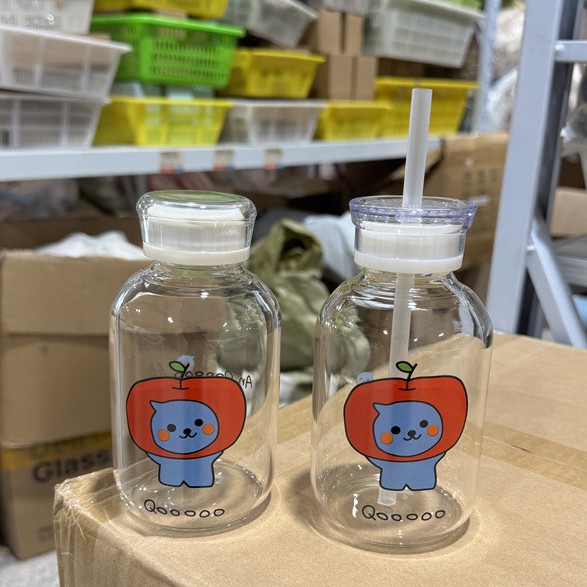 卸売高品質かわいいアップルクールガラスポータブル女の子ストローカップミルクカップ夏大容量ウォーターカップ