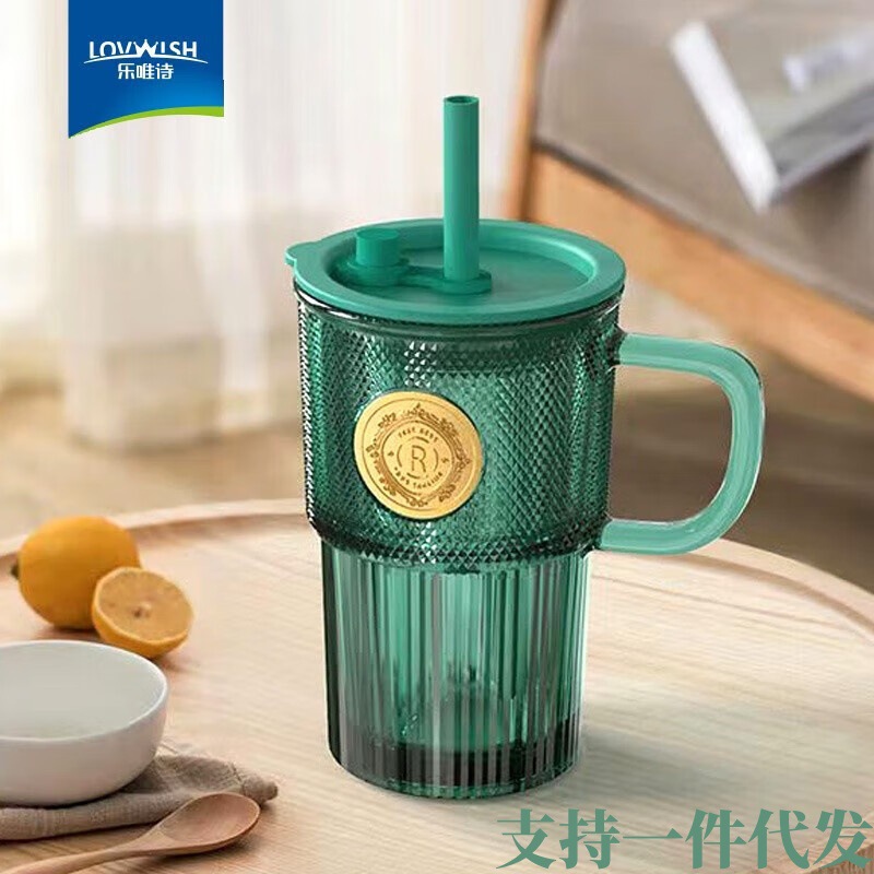 クリエイティブ大容量ガラスストローカップins風網紅カップ携帯オフィス飲料泡茶カップ卸売り