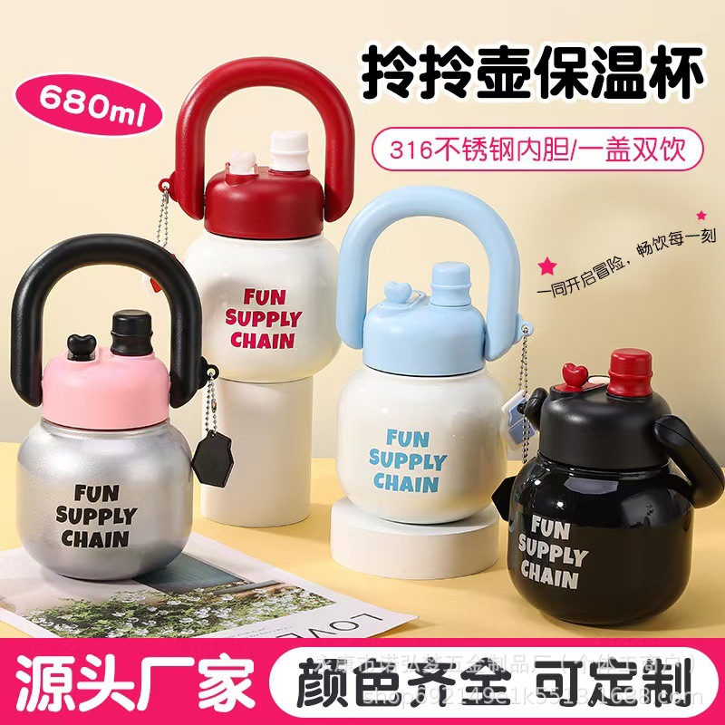 新しい大容量ポータブルポット 316 ステンレス鋼ダブルドリンク断熱カップポータブル茶漏れビッグベリーストローカップ