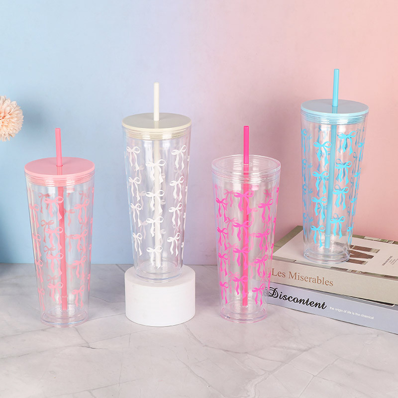 アマゾンの人気タイプの蝶結びストローカップはリアルタイムで透明で携帯しています。