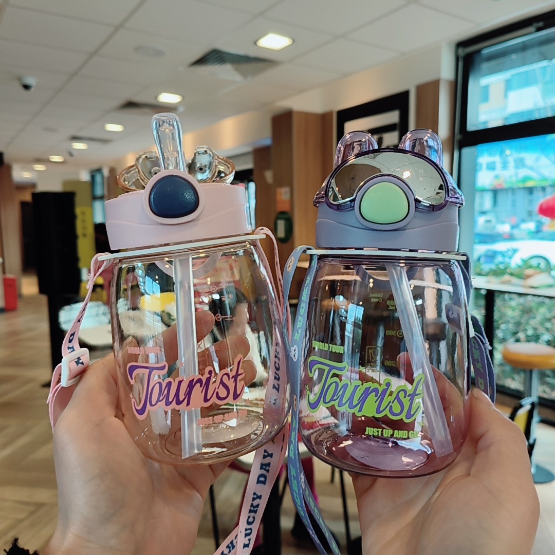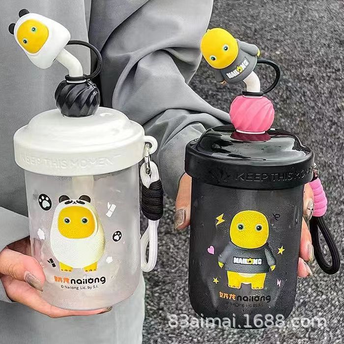 夏の新型男女学生プラスチックコップ屋外通学携帯水筒大容量ストローコップ
