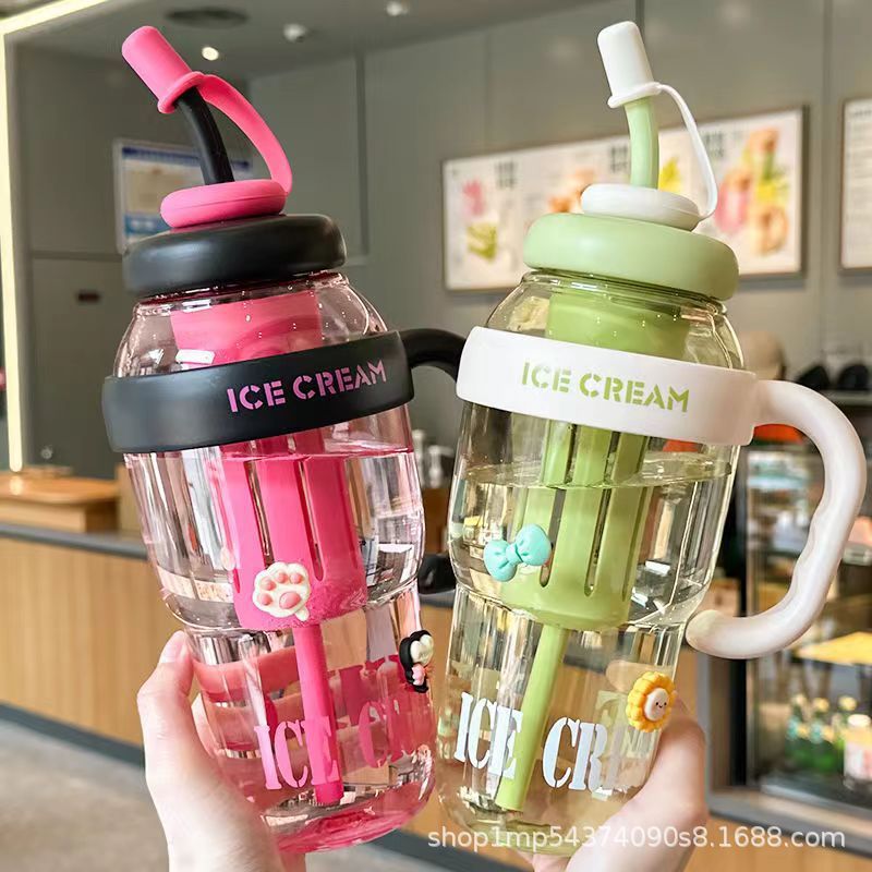 ストローカップシンプル高颜値大容量学生独立茶倉プラスチックカップ屋外運動携帯ハンドルカップ