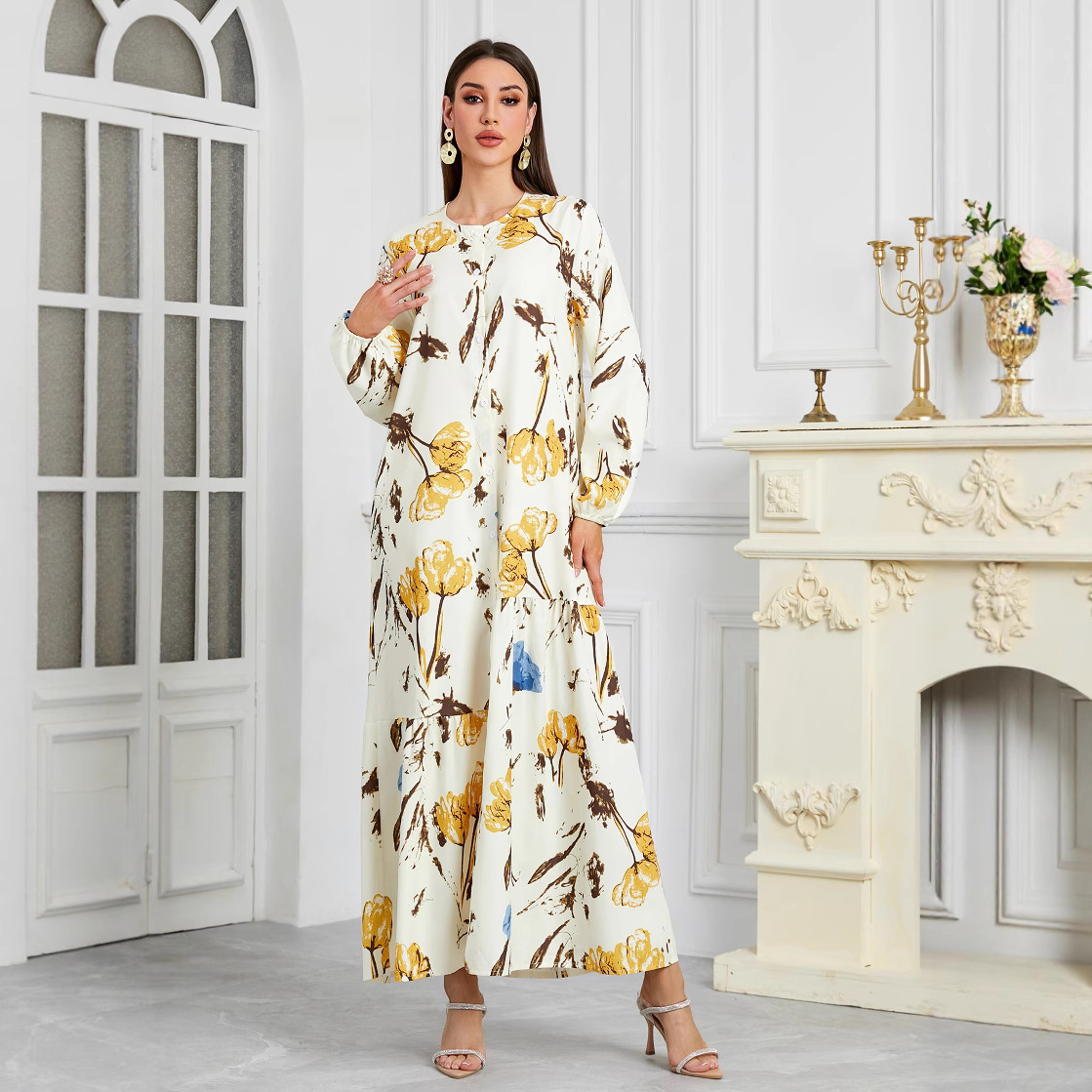 スポット中東クロスボーダーイスラム教徒アバヤサマーローブドレスプリントロングスカートドバイローブ外国貿易