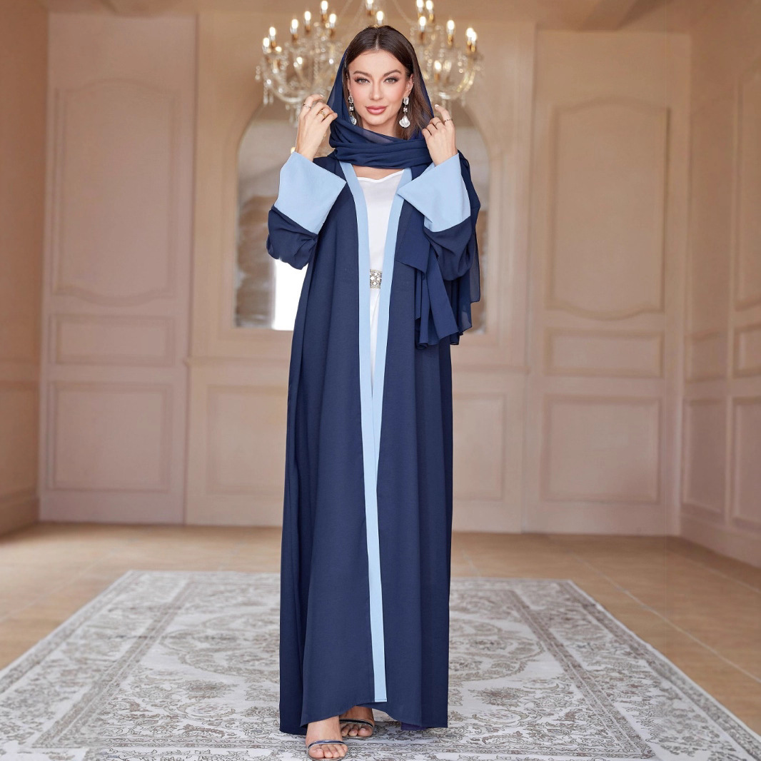 2025年クロスボーダー中東貿易婦人服イスラム教徒アバヤコントラストカラースカーフドレスローブ
