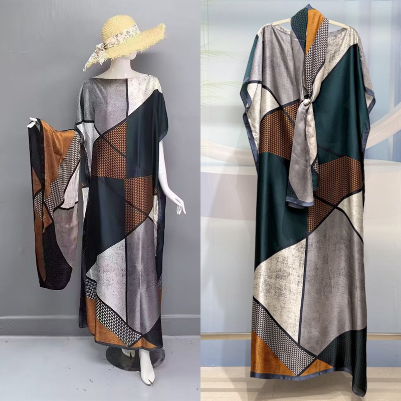2024年中東アバヤプリントスパンコールヘッドスカーフローブアフリカ欧米民族風ワンピースアフリカ風ローブ