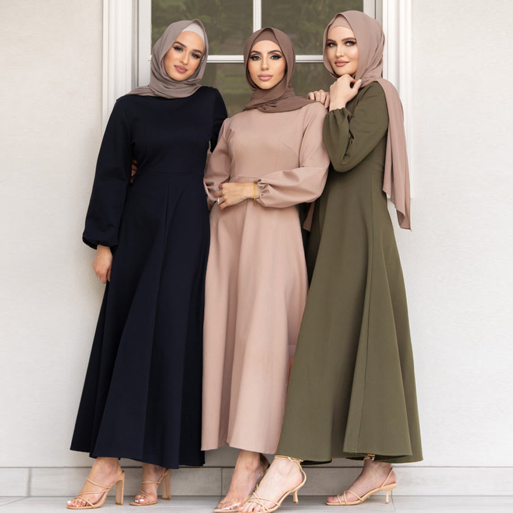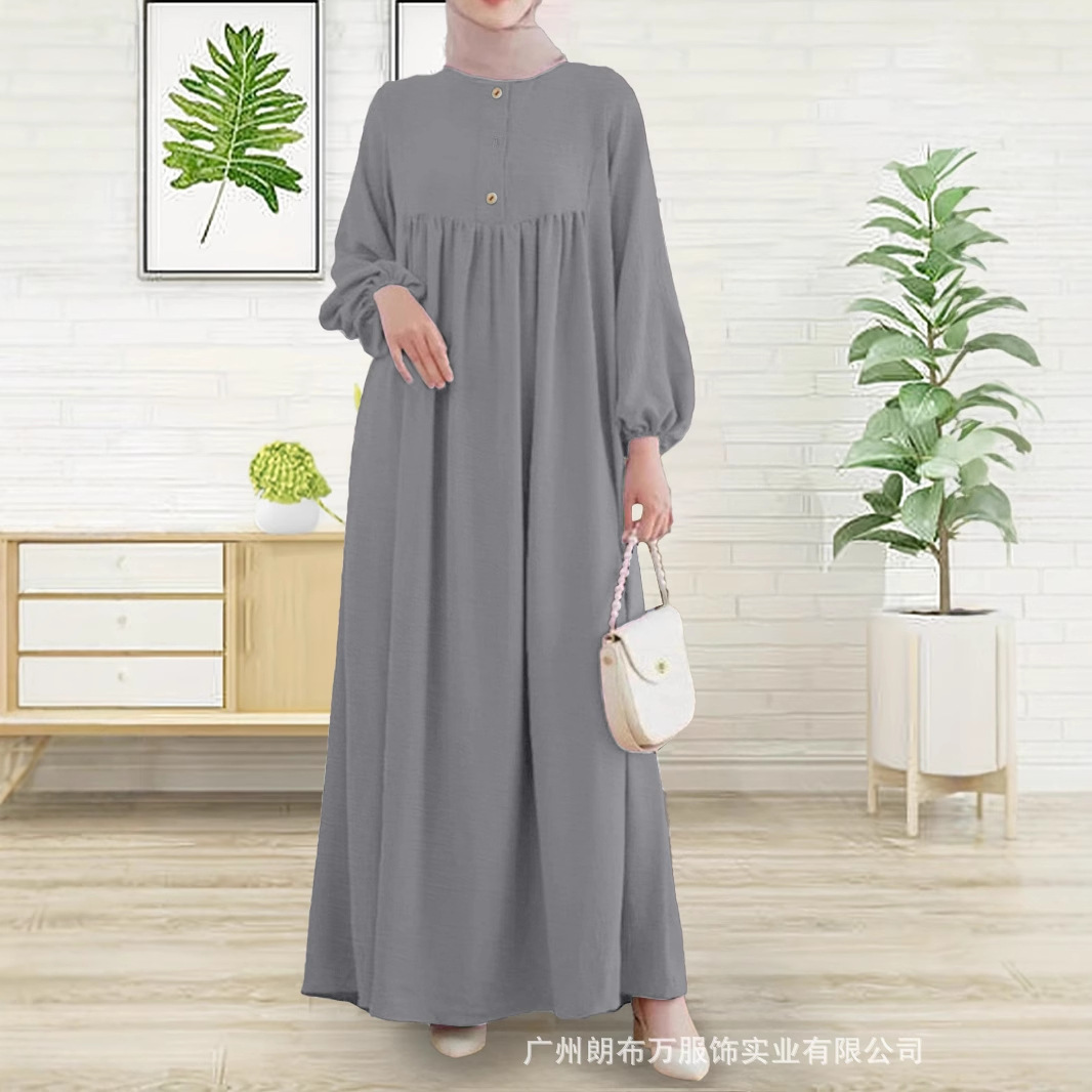 国境を越えた新しいイスラム教徒の女性のローブファッションカジュアルパフスリーブシンプルなルーズソリッドカラードレス