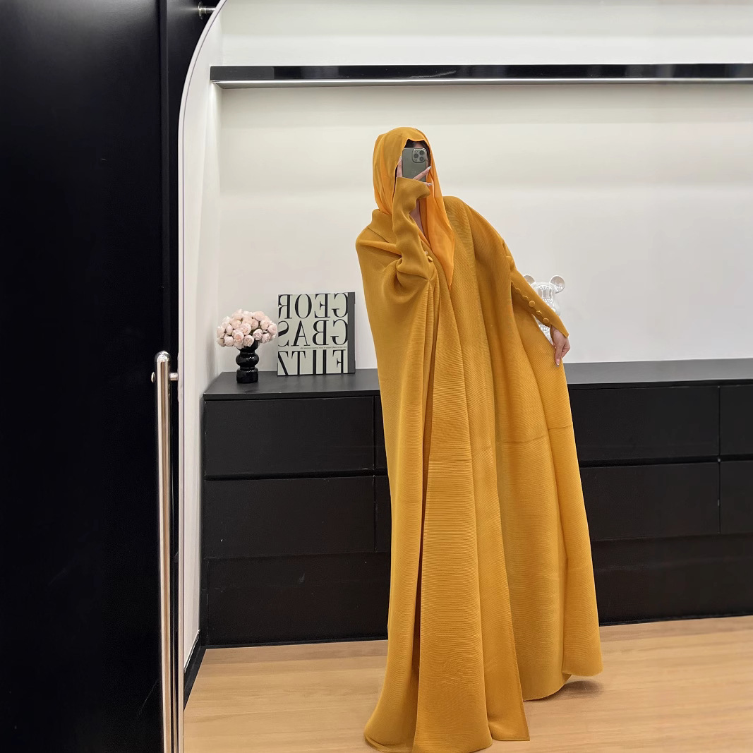 三宅プリーツ新作トレンチコートアバヤ中東ムスリムロングガウン女性人気無地バットスリーブゆったりジャケット