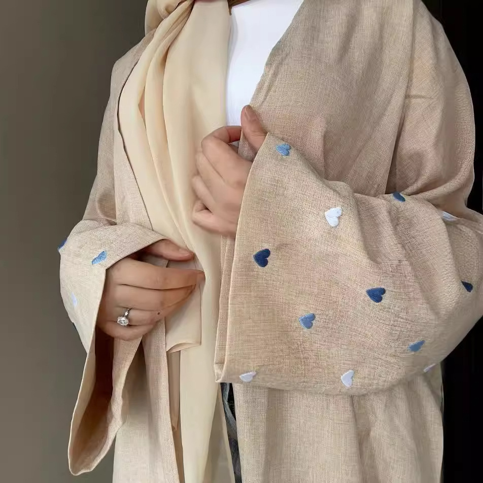 クロスボーダー刺繍民族カーディガンopen abaya中東ドバイ長袖愛刺繍リネン民族衣装