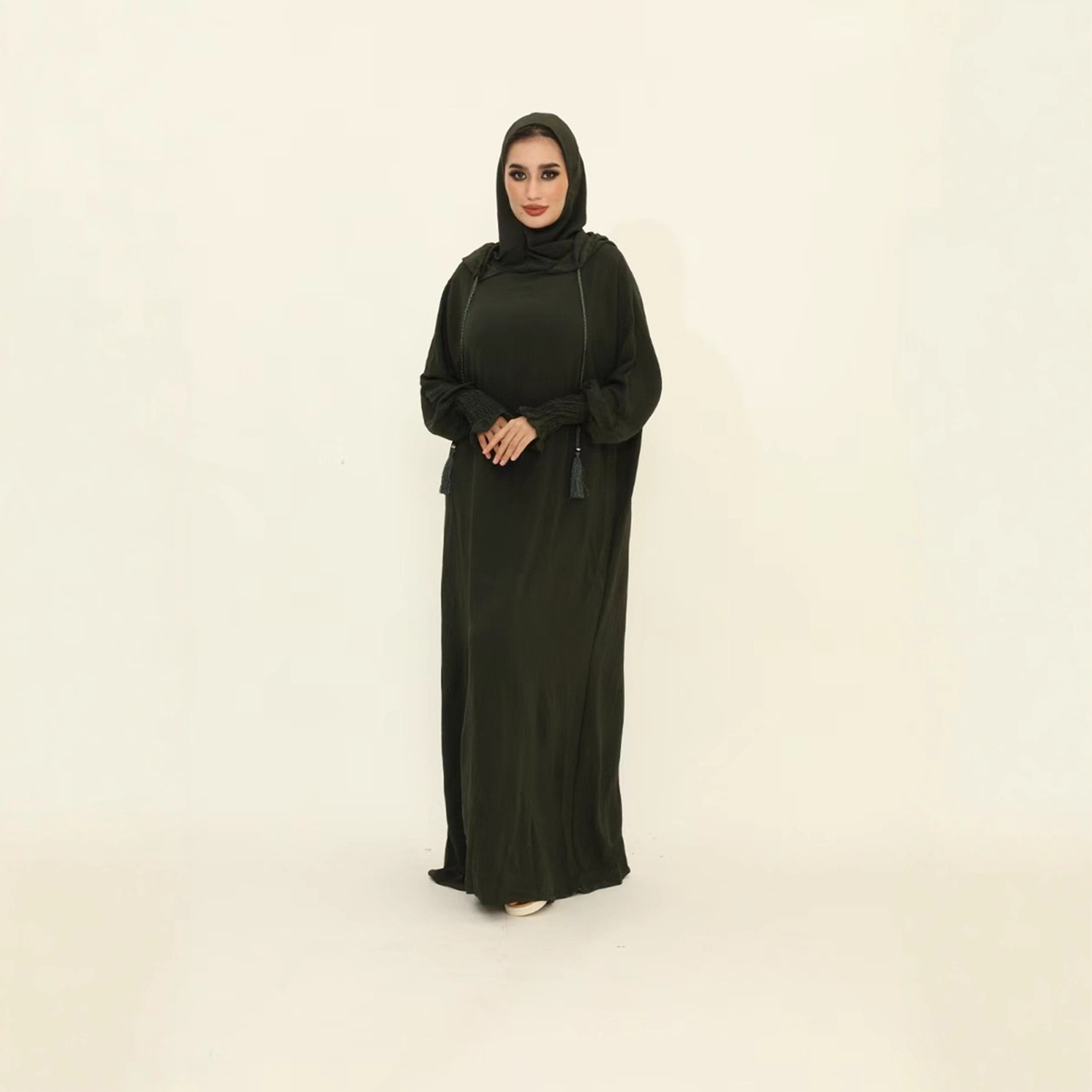 Loriya 2024速売通ドバイ中東トルコ純色帽子付きスウェットワンピースabayaLR921