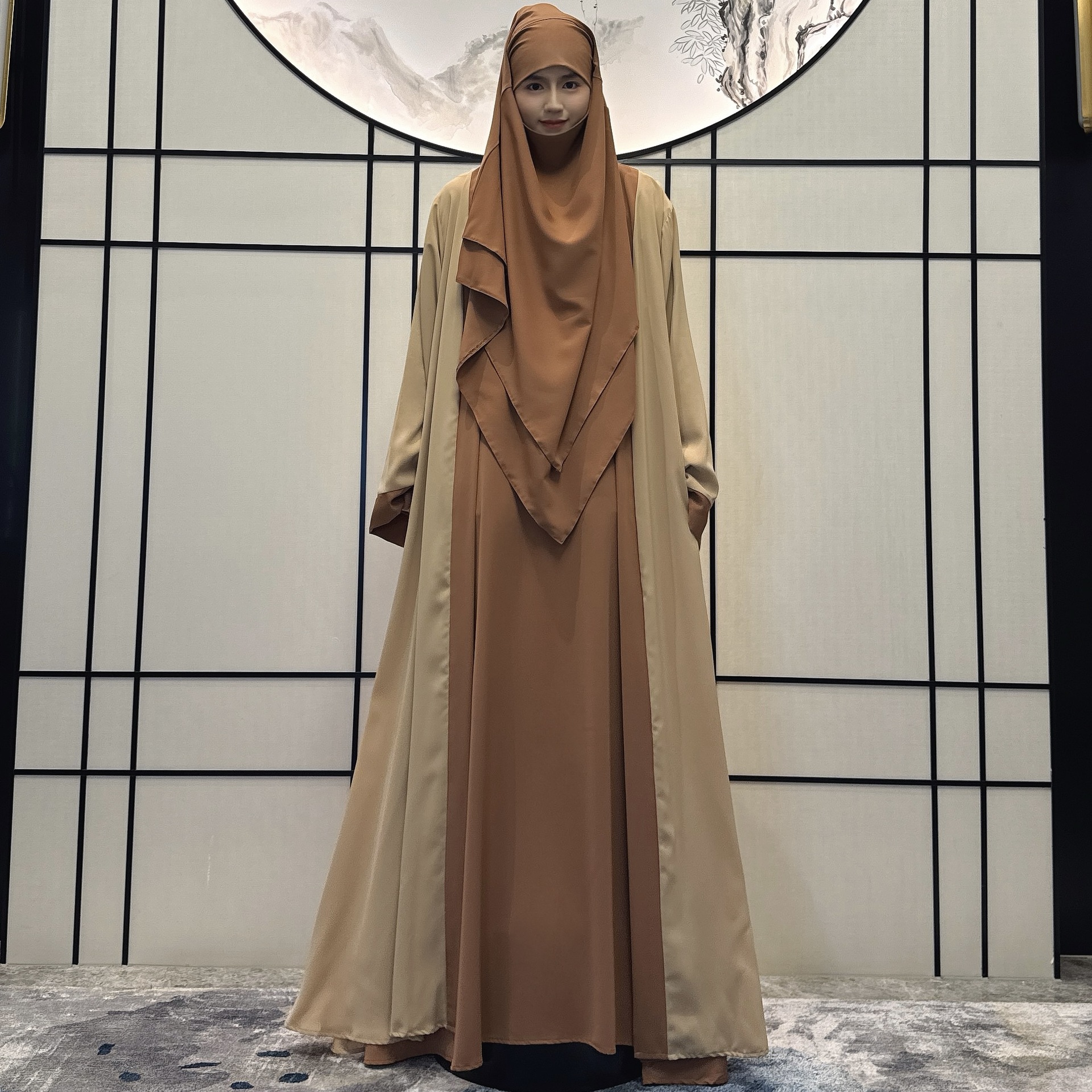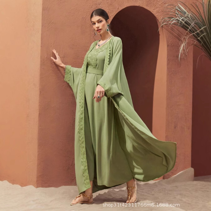 AB246中東婦人服網糸ムスリムワンピース2点セット工芸ドバイローブ