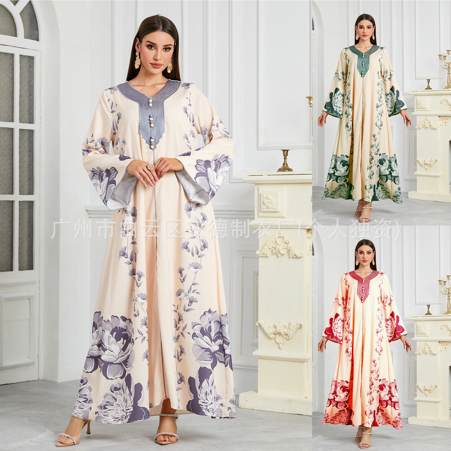 国境を越えた対外貿易イスラム教徒女装中東長衣定位プリント袖ワンピース