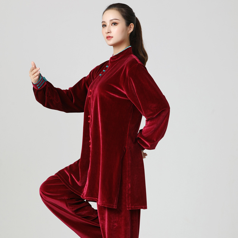 2020種類の厚手の太極服秋冬の新型の韓国の絨毯の演技服の練習の功は金の絨毯のスーツの男女を演出します。