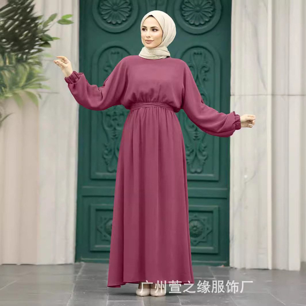 スポット品質2023クロスボーダー中東ムスリム純色ゆったり型丸首長袖ロングシャツワンピース