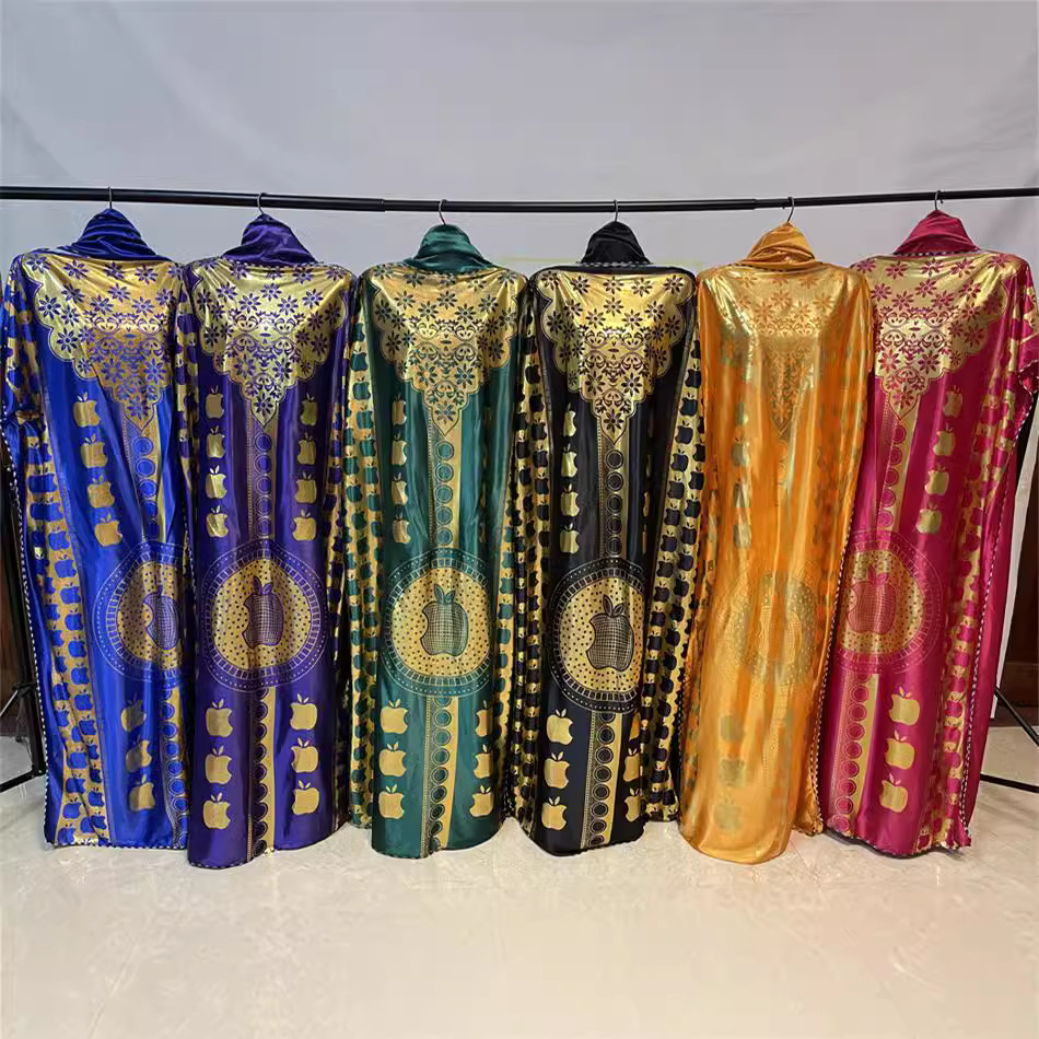 Tiktok2024欧米のアフリカの刺繍プリントのゆったりしたガウンとスカーフの大きいサイズのガウンのワンピースの女性