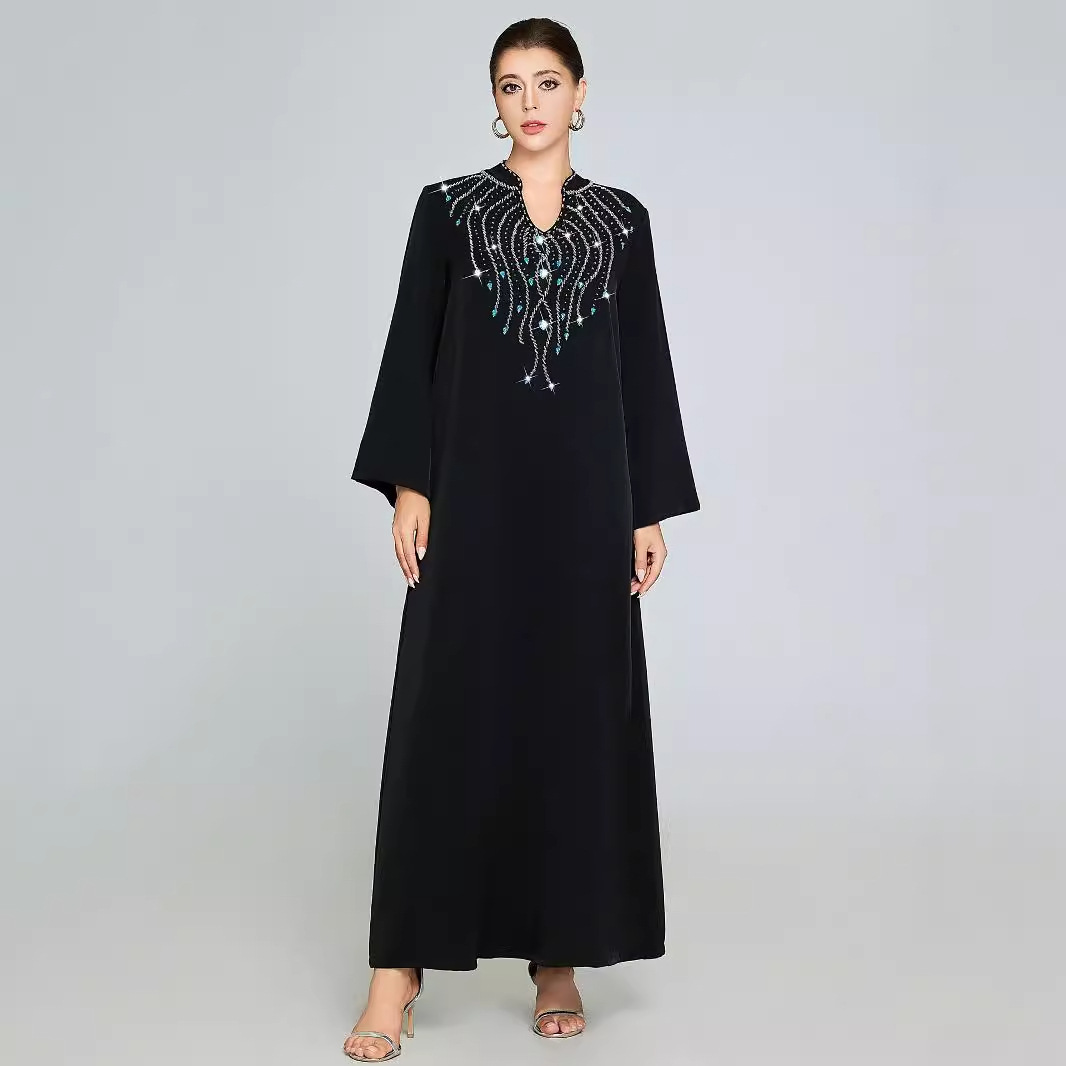 国境を越えたアマゾンアラブ服装muslimホットドリル雪紡織立襟ワンピース中東ドバイローブ8841