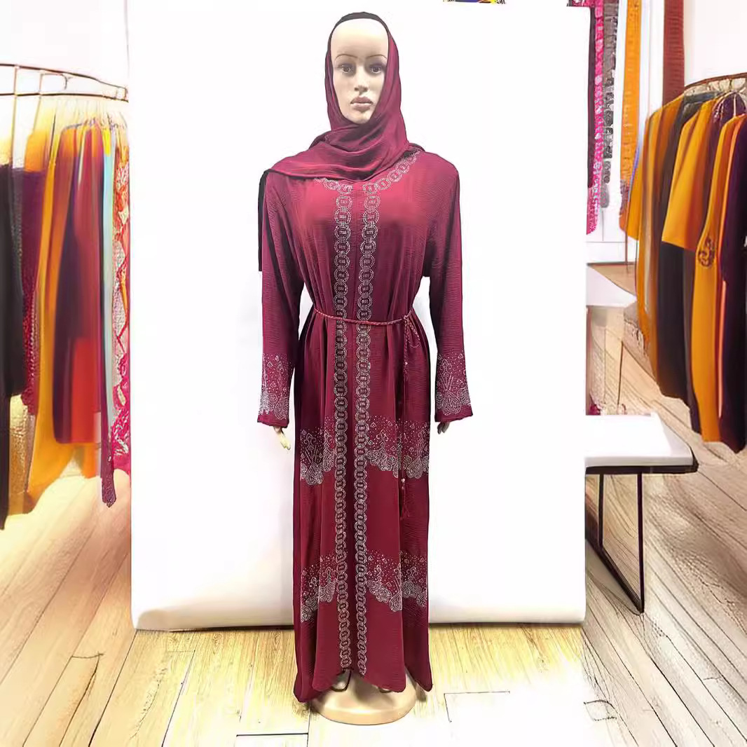 国境を越えた中東貿易イスラム教徒の女性のアバベルト付き既製ツーピーススーツカーディガンドレスローブ