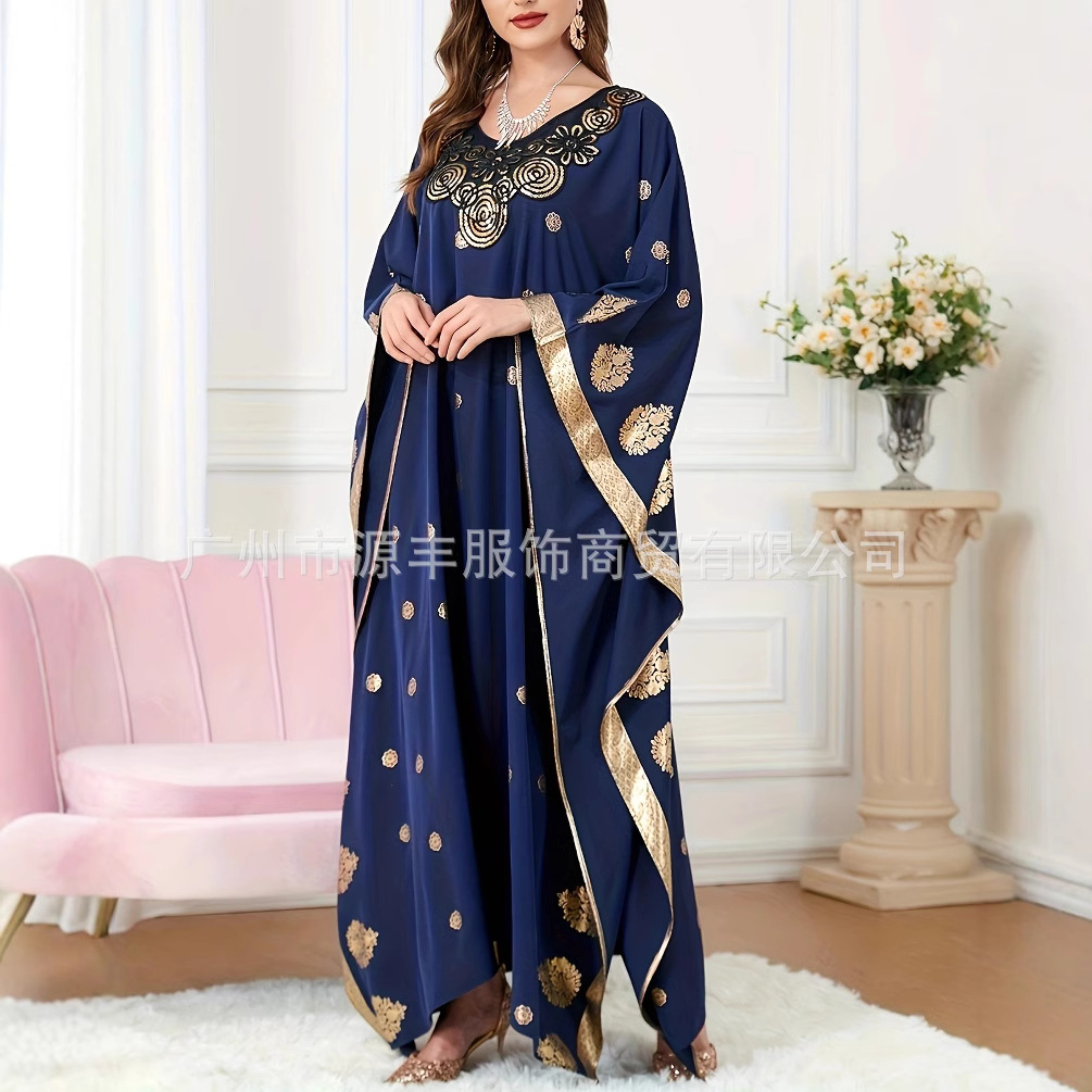 国境を越えた欧米中東イスラム教徒の対外貿易服装箔押しプリントコウモリ袖ゆるいワンピース女装ローブ