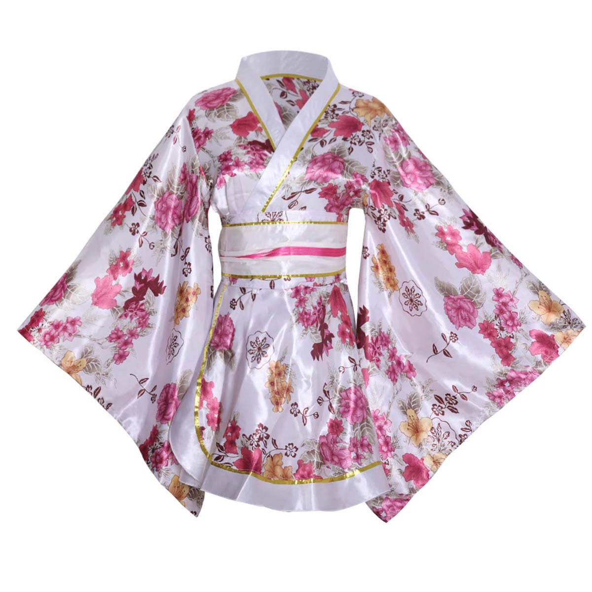 レディース短い着物日本着浴衣無地プリント夏バスローブ桜シーズンコスプレステージ衣装