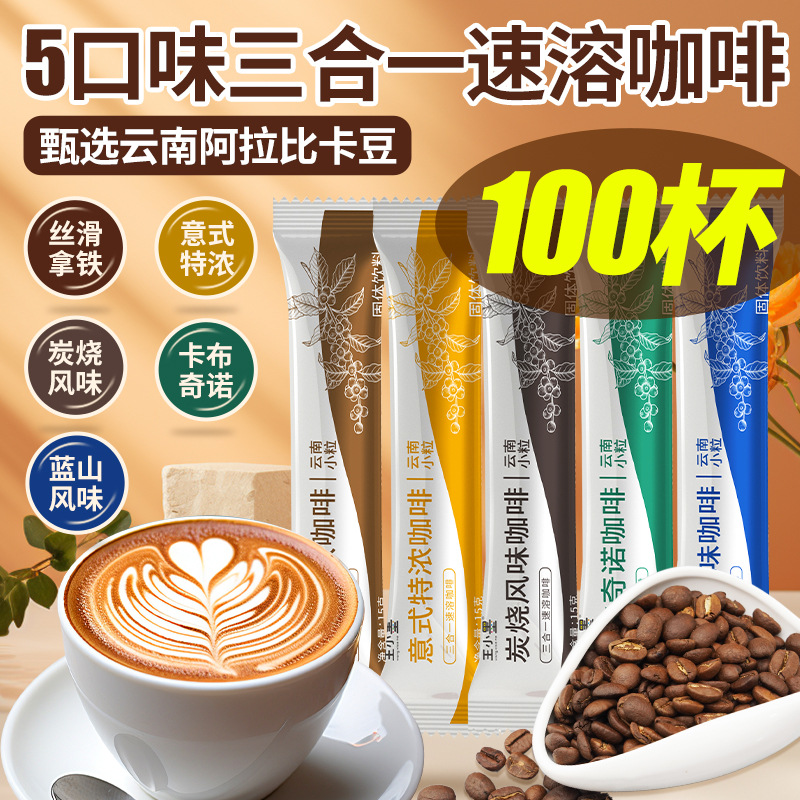 雲南省の小粒コーヒー三合一藍山インスタントコーヒー条包装卸売りラテカプチーノ小包装携帯