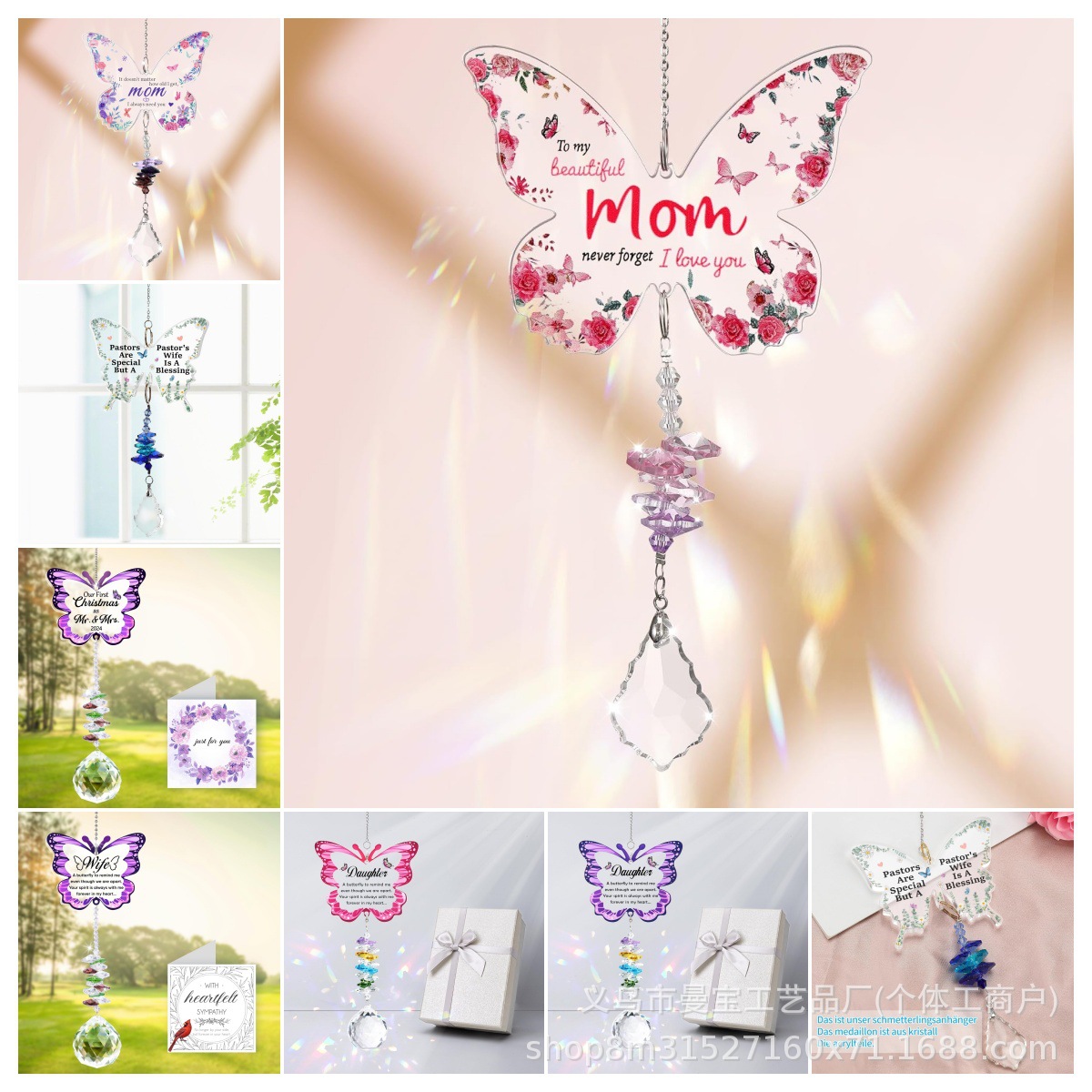 クロスボーダー新品レディースお誕生日プレゼント蝶々形ペンダントアクリル車載ストラップ掛け飾りママ蝶ギフト