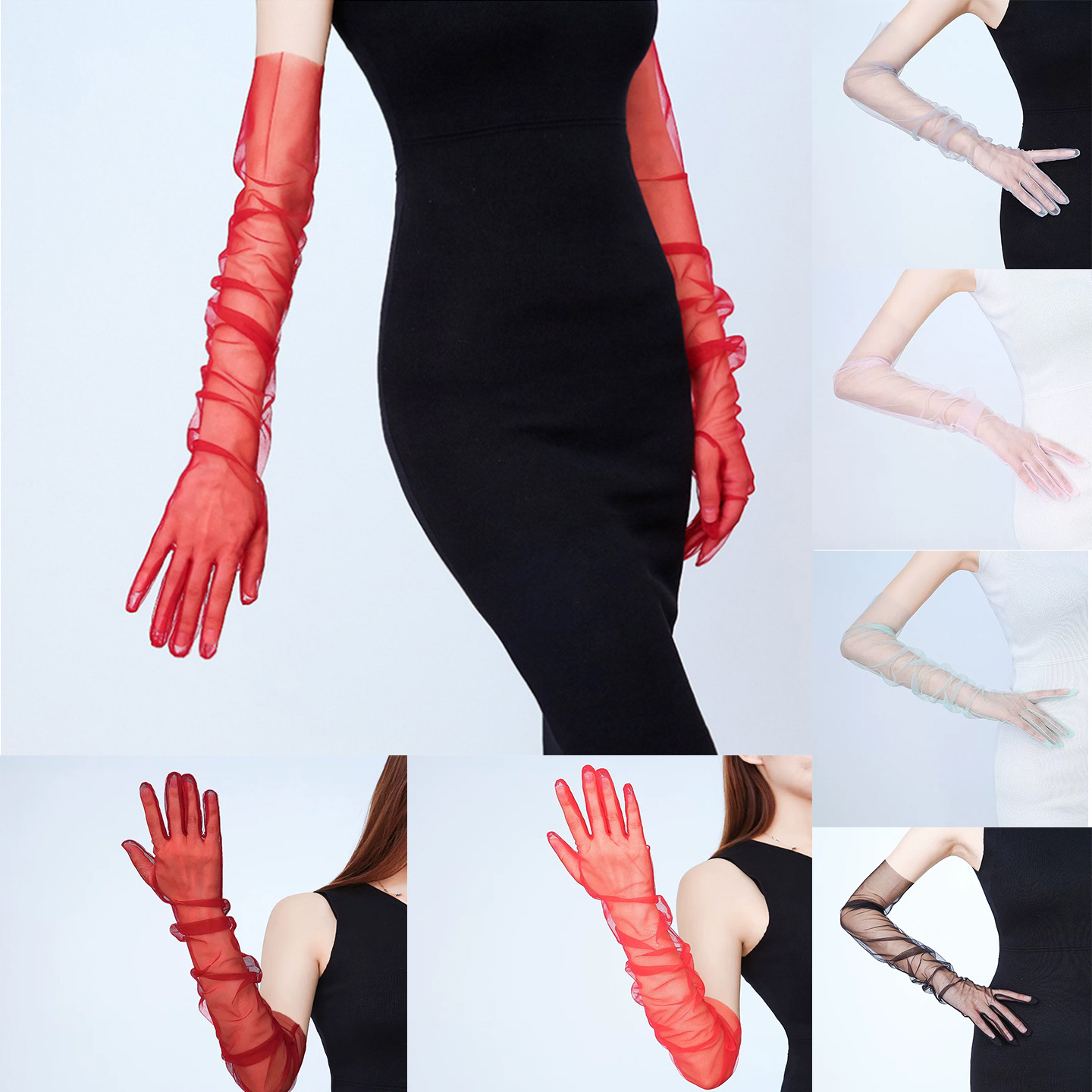 輸出70cmロングチュール手袋透明カラー手袋花嫁手袋結婚手袋演出ドレス手袋