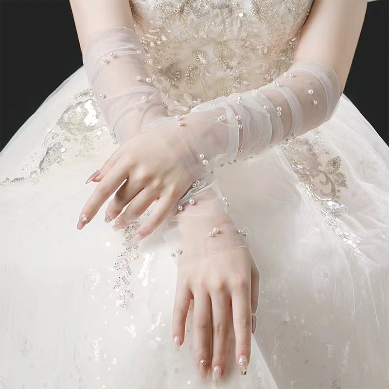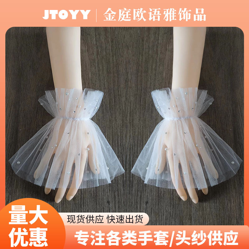 ブライダルメッシュスリーブメーカー卸売レースパール薄い日焼け止めアクセサリー写真撮影ウェディングドレス手袋ドレスガーゼスリーブ