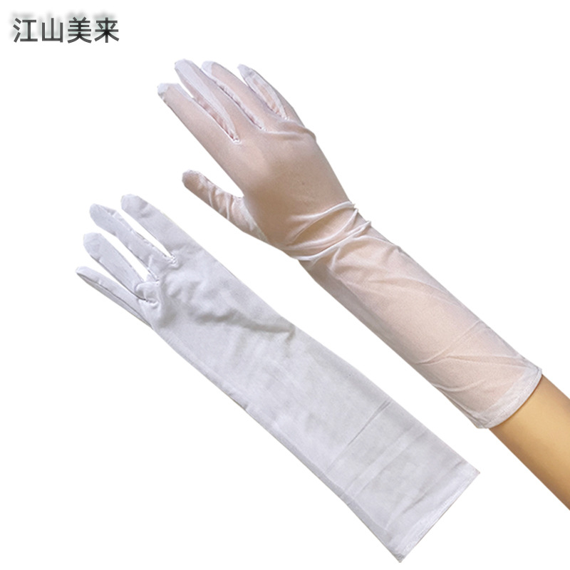 夏の薄い長いネット手袋の女性は花嫁のウェディングドレスのチャイナドレスの手袋を防ぎます。