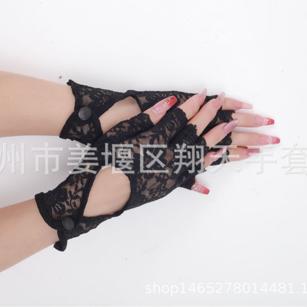 ダークナイトローズセクシーなブラックレース宮殿スタイルレトロメッシュブライダルウェディンググローブ写真小道具