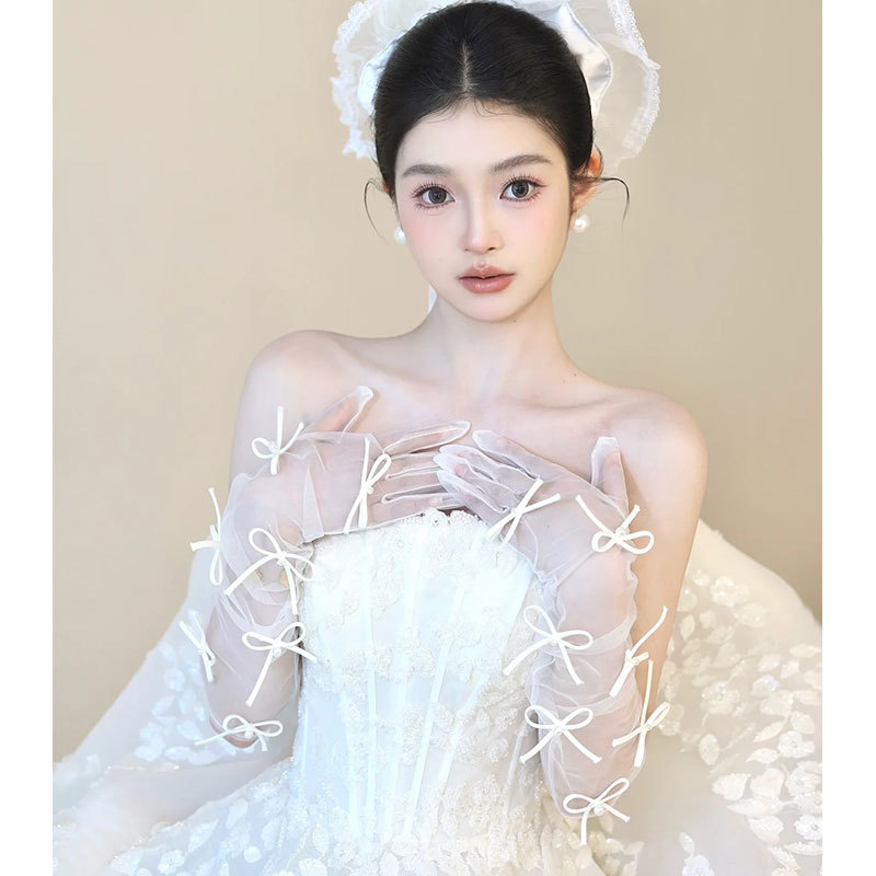 新しい蝶結びスタイルのウェディングドレス手袋ロングホワイトメッシュブライダルウェディングスタイルフォトスタジオドレスアクセサリー