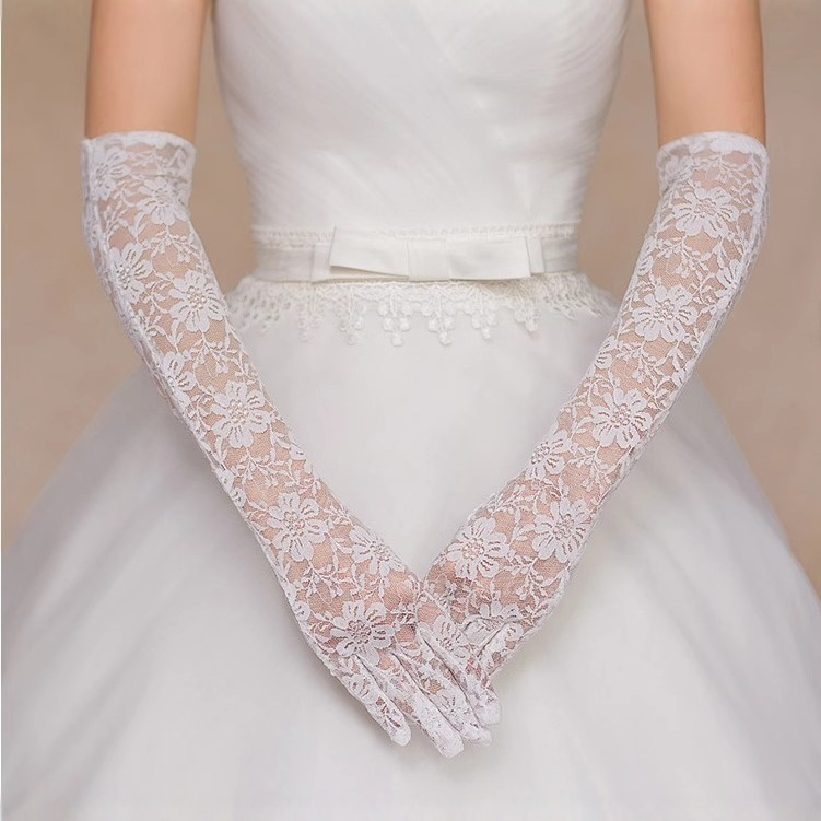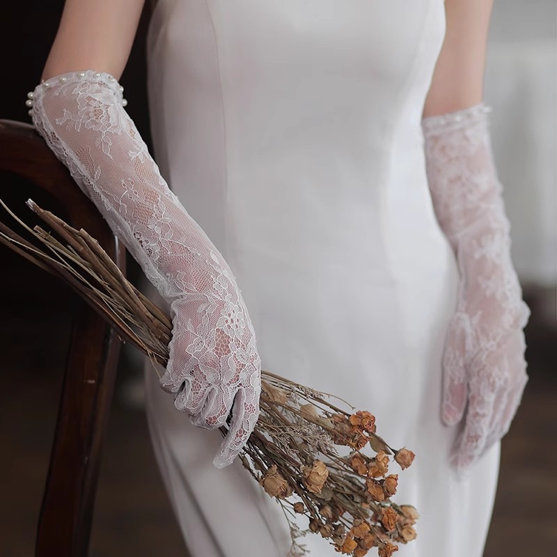 花嫁ウェディング手袋韓国式長袖カバー露指ドレス腕隠し肉写真演出レース透明薄紗白