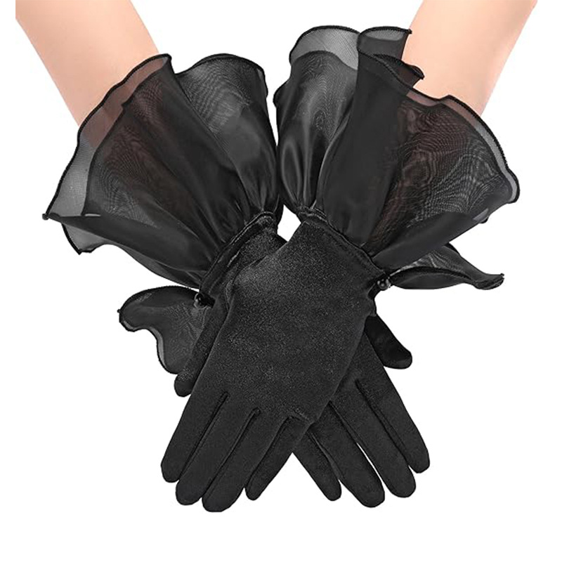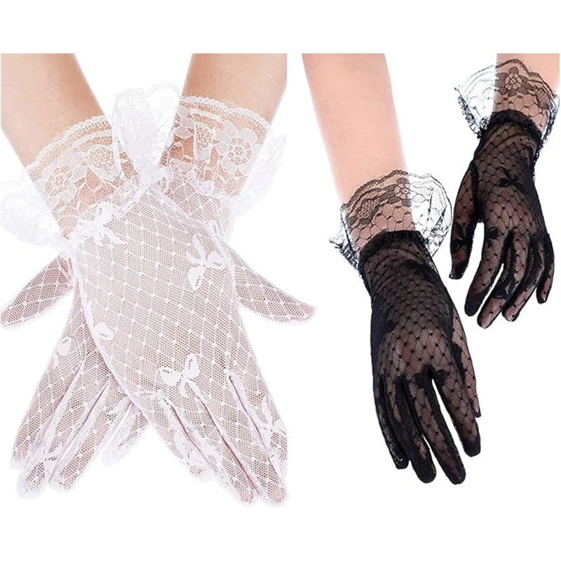 クロスボーダーレディース夏日焼け止め手袋メッシュちょう結び黒レースマナー手袋花嫁ウェディング手袋