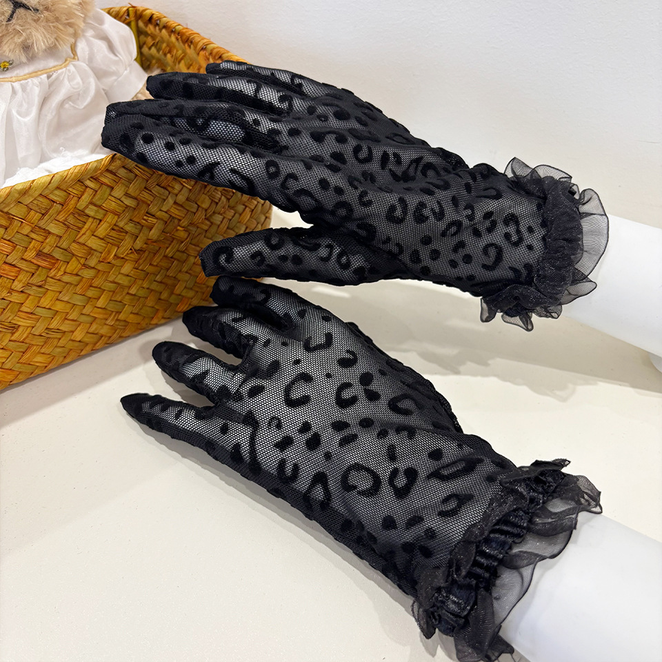 セクシーなレトロなメッシュレースヒョウ柄手袋女性のための夏薄いレースナイトクラブステージダンスパフォーマンスフルフィンガー