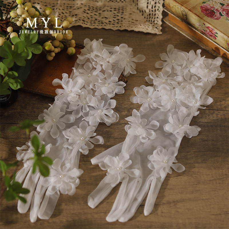 超仙色立体砕花手袋花嫁結婚高級感アクセサリーウェディングドレス写真撮影道具森系旅撮影