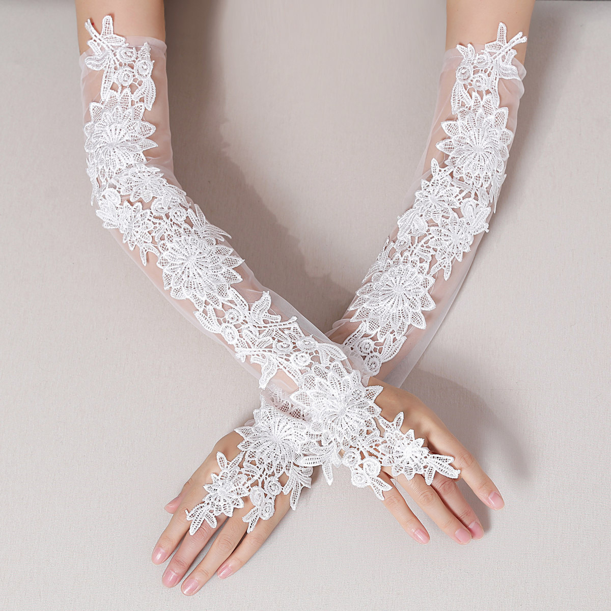 ブライダルウェディングドレスパールグローブレースホワイトウェディングガーゼスリーブウェディングスリーブドレスロングメッシュハンドスリーブ