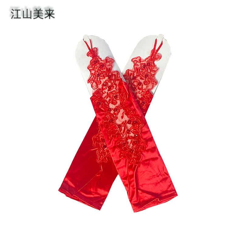 花嫁の結婚式の手袋には、長いサテン手袋の日焼け止め赤白黒の色があります