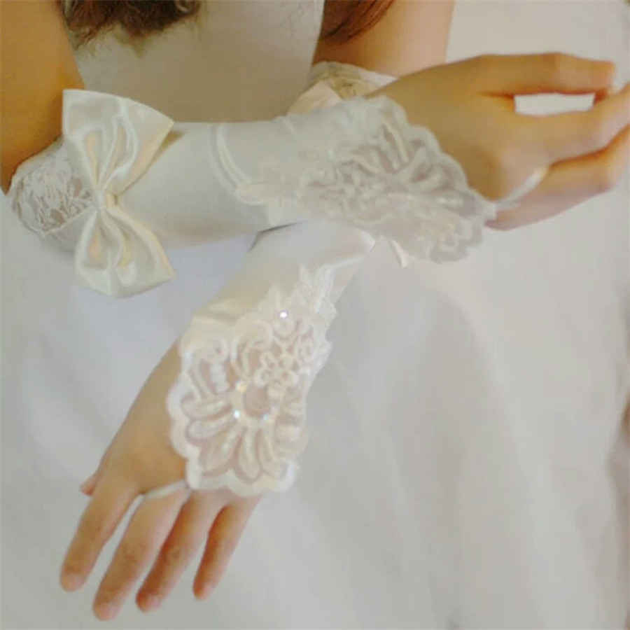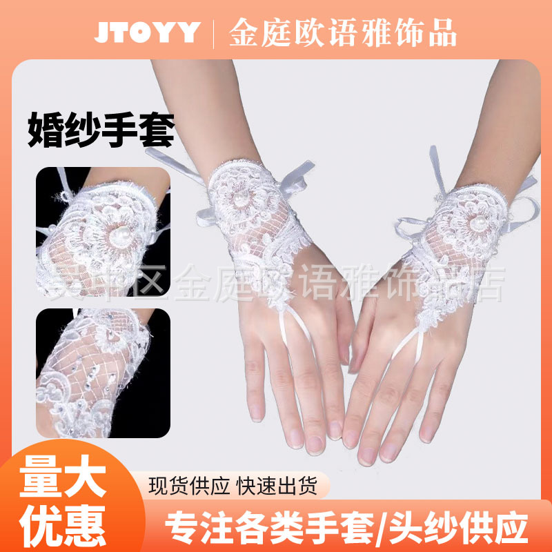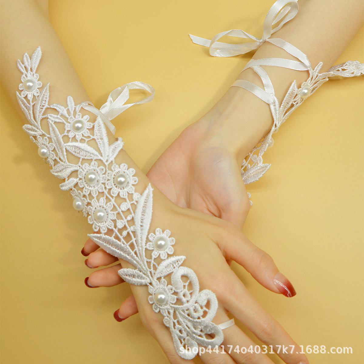 新しい花嫁の結婚式のドレスの手袋の韓国式のレースの蝶結びの真珠は短いタイプの夏の手袋を指します。