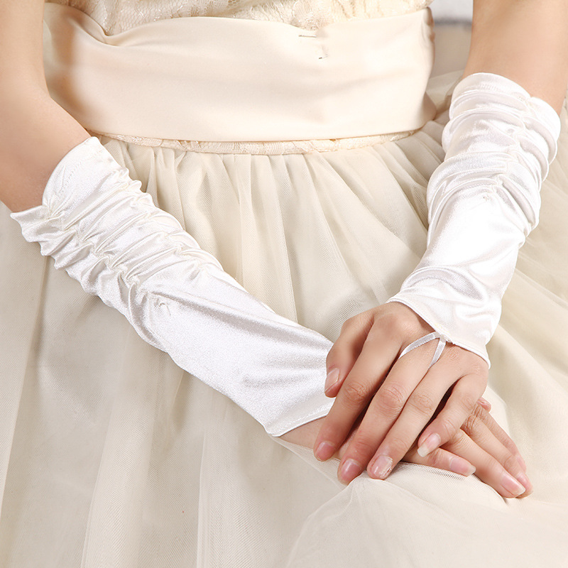女性の舞踏会のパーティーの弾力性のある色丁はしわの新婦の手袋の結婚式の新婦のウェディングドレスの礼儀の手袋のメーカーを打って直接供給します。
