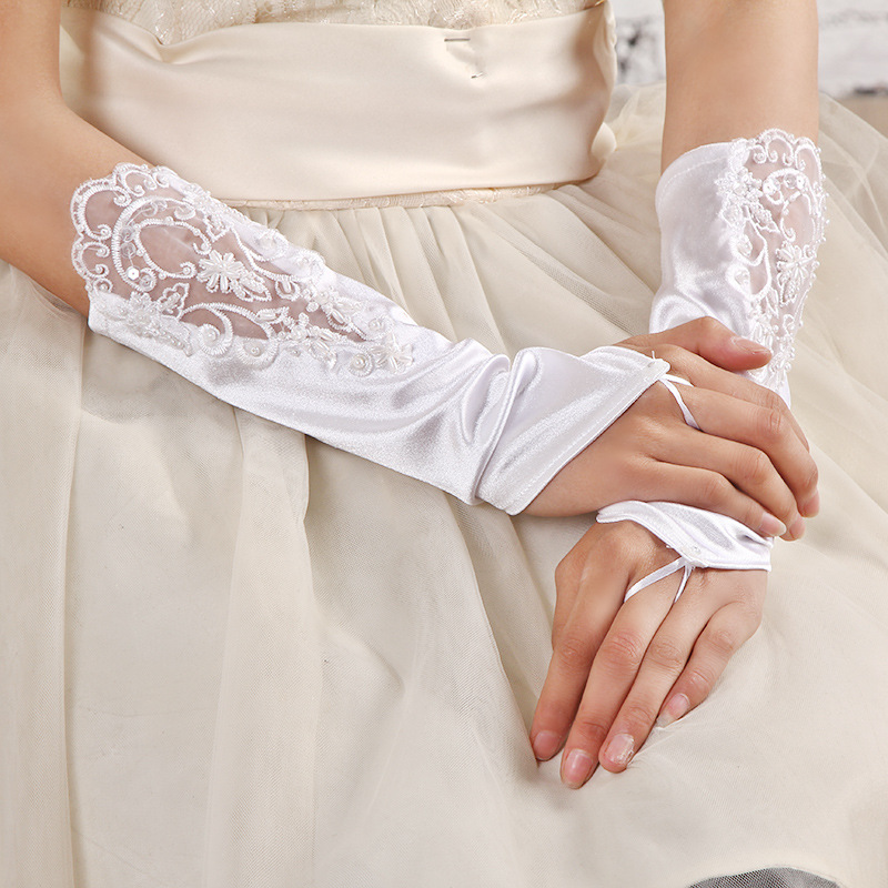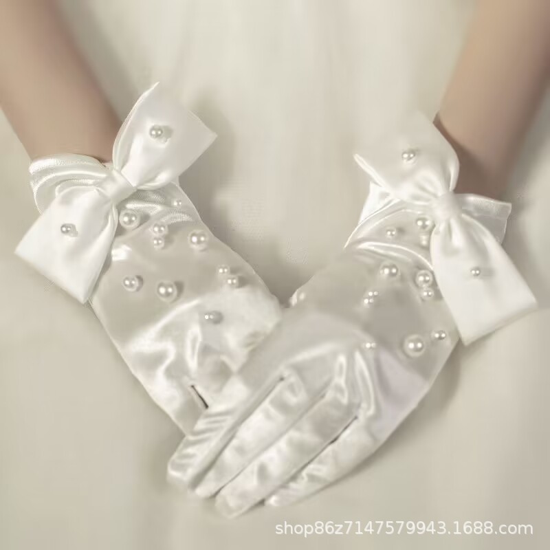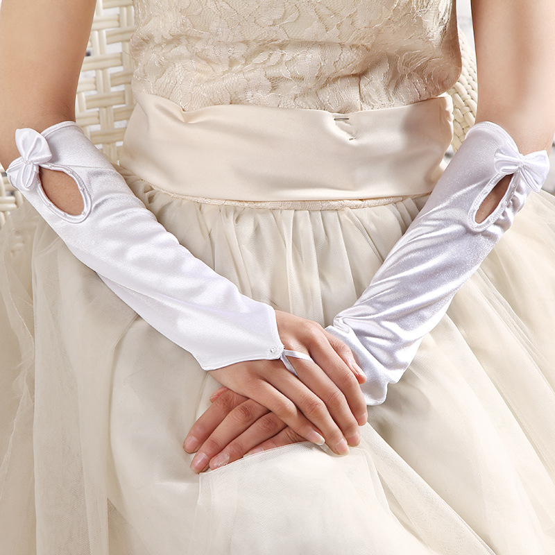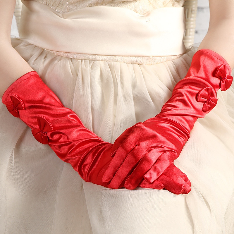 蝶結びのビーズの縁の花嫁の手袋の蝶結びのドレスの手袋の舞台のショーの王女のスカートの花嫁の手袋