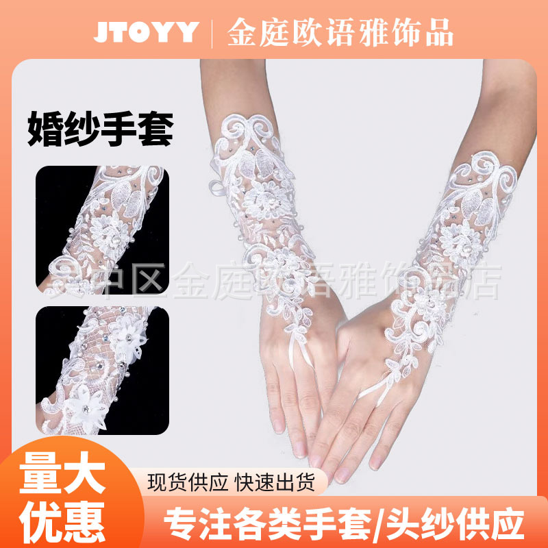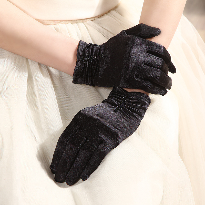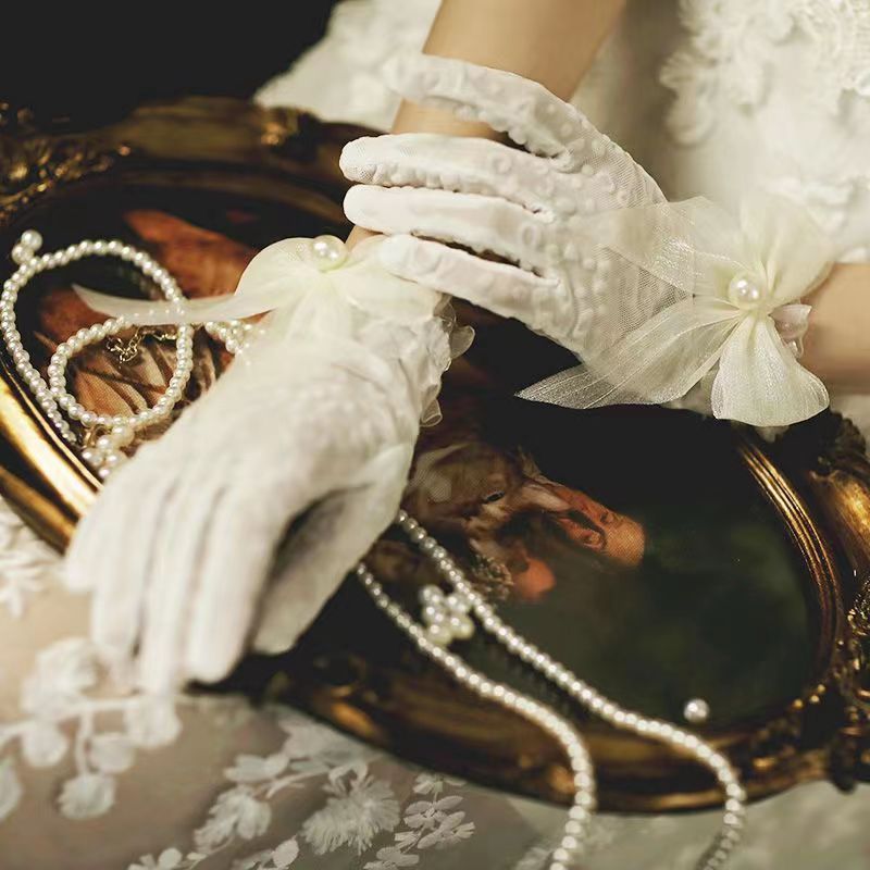 弾力性ナイロン色丁釘珠短手袋花嫁白色短手袋復古フランス旅行ウェディング手袋