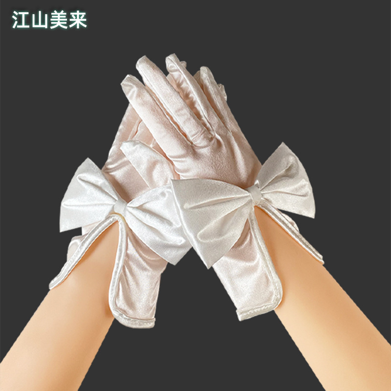 色丁弾力ナイロン短光板花嫁手袋女性短金色丁手袋マナー手袋ウェディング手袋