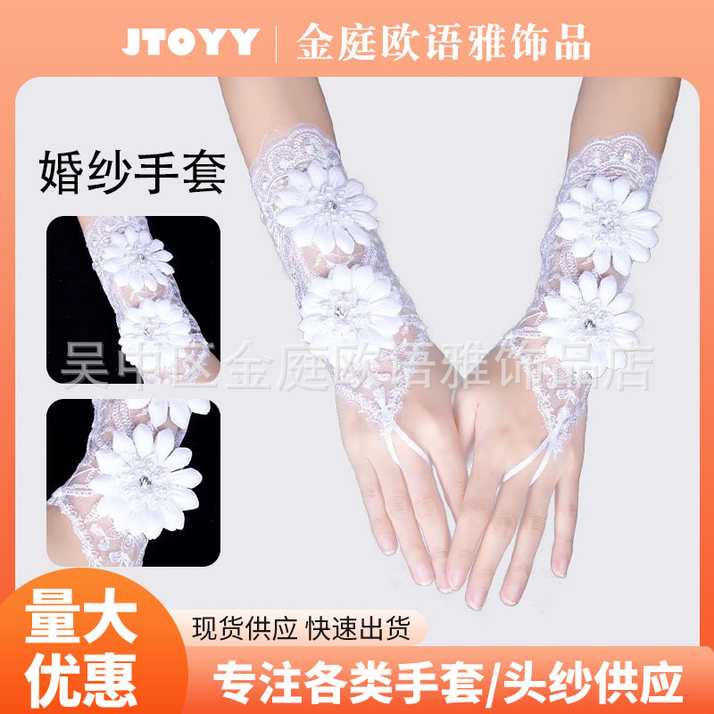 欧米の新型車の電気自動車の女性の短いタイプのセクシーなレースの日焼け止めの手袋のウェディングの新婦の手袋の女性の卸売り