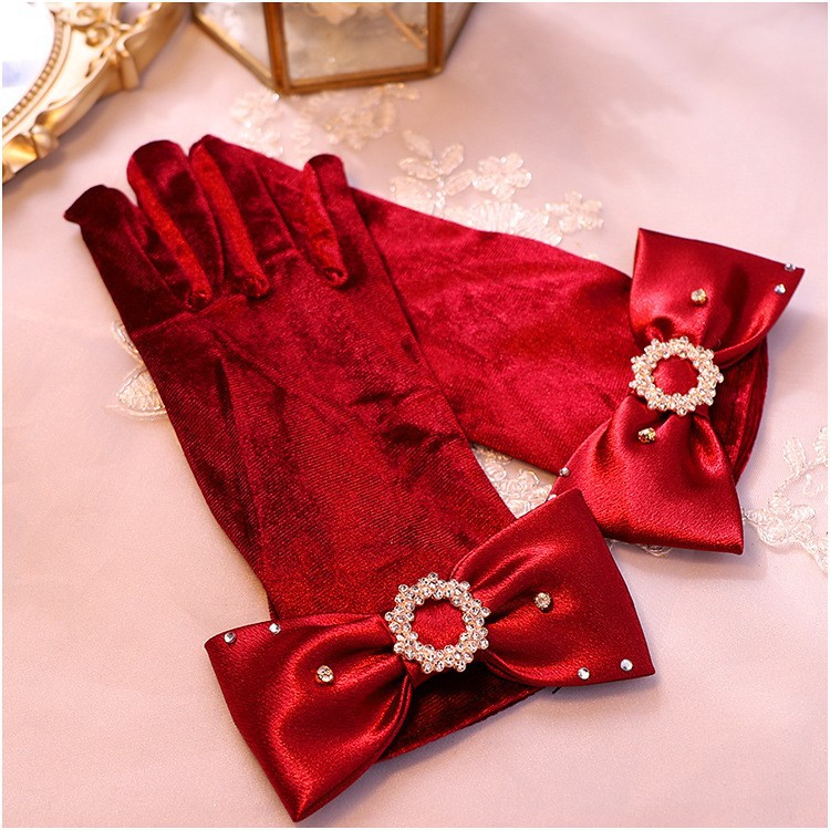 卸売り結婚新婦紅手袋防寒保温ベルベット紅書結婚式分指黒腕カバー晩餐会公演