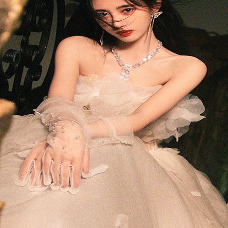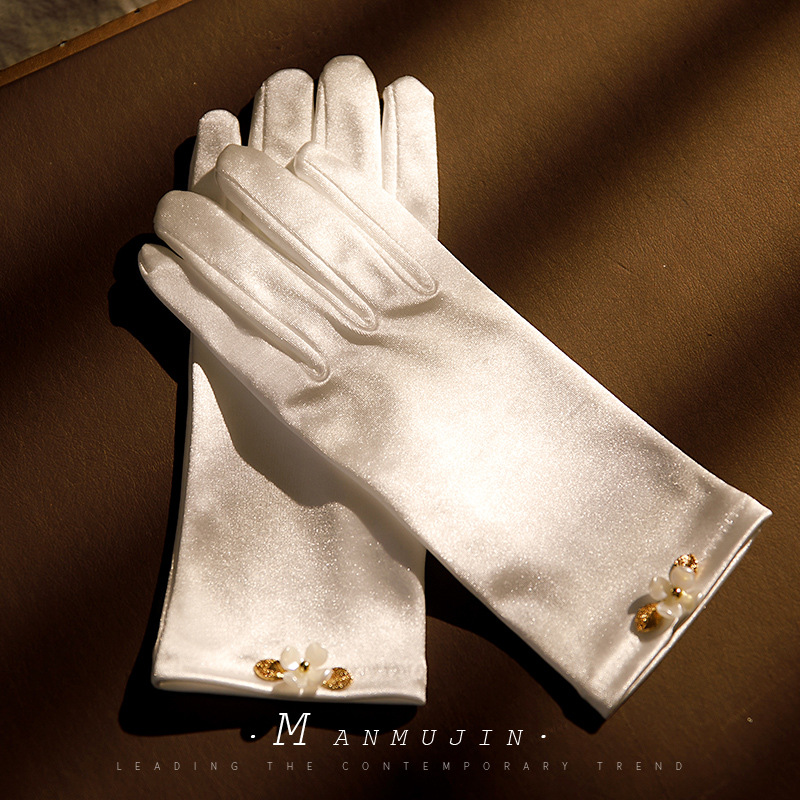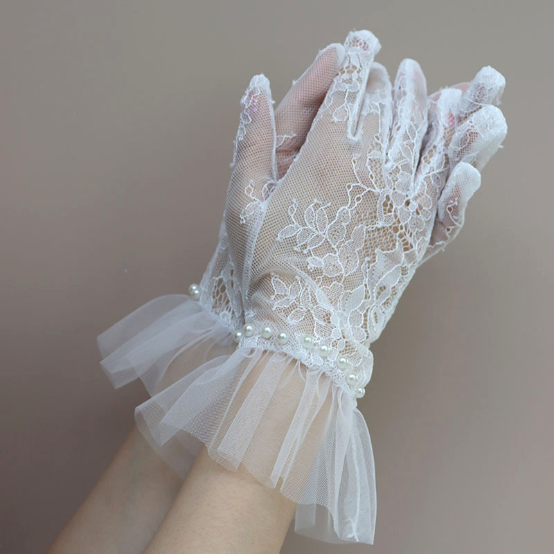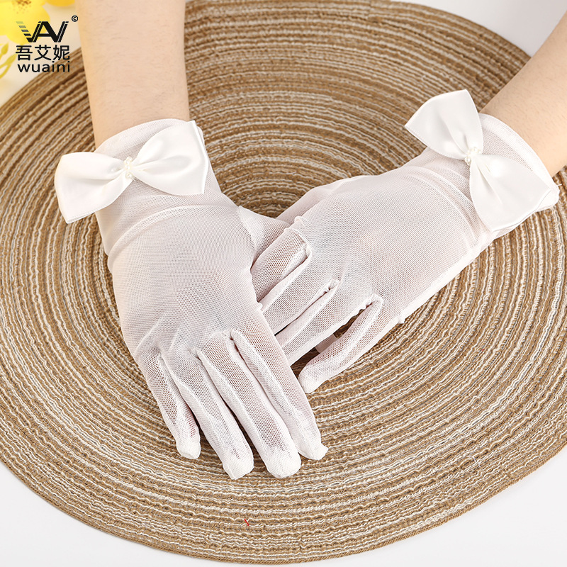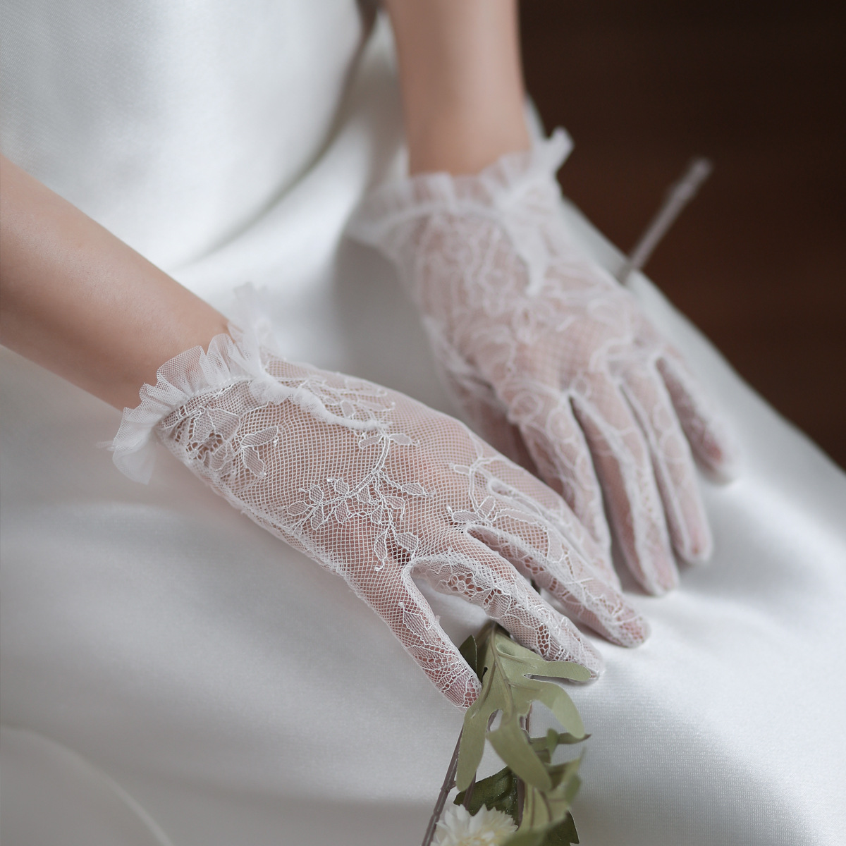 ウェディング写真手袋花嫁韓国式花真珠短森系超仙薄紗日焼け止め結婚式器女1123