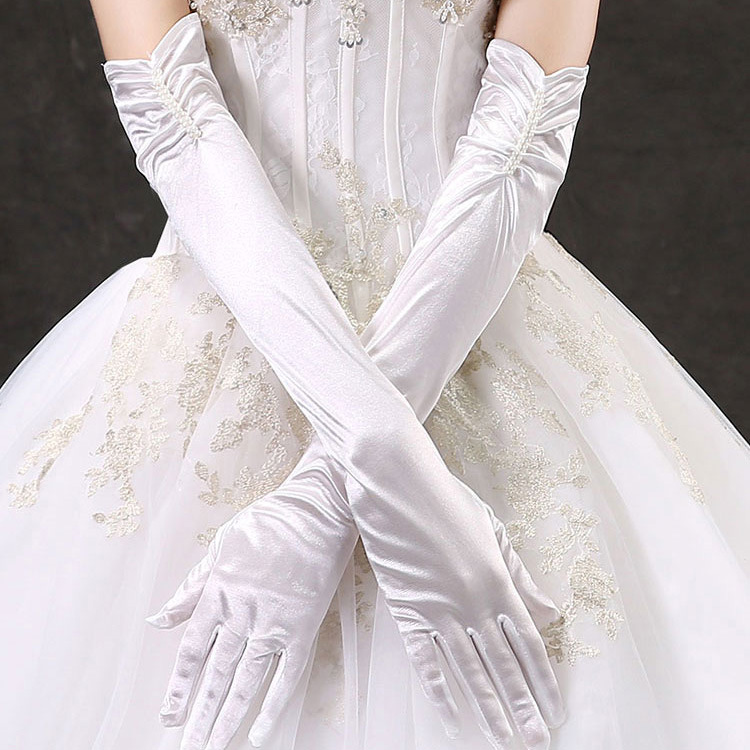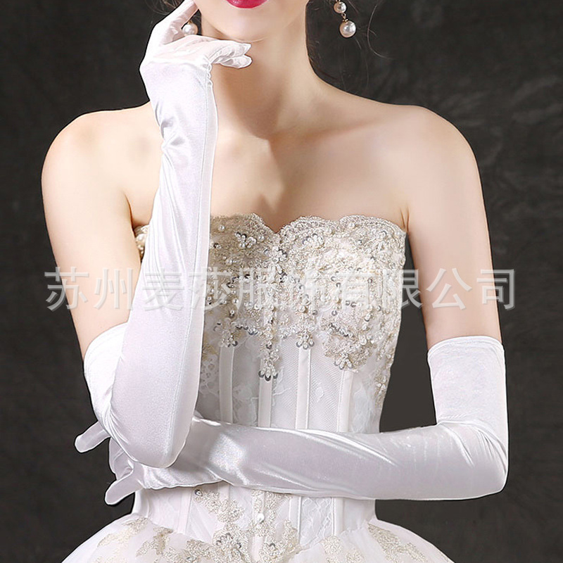 欧美万圣节新娘手套45cm长款色丁简约婚礼婚纱礼服光板女绸缎袖套