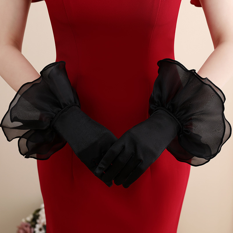 タキシード手袋黒いサテン手袋小香風女神結婚ドレスディナーアクセサリー優雅ヘボン風冬