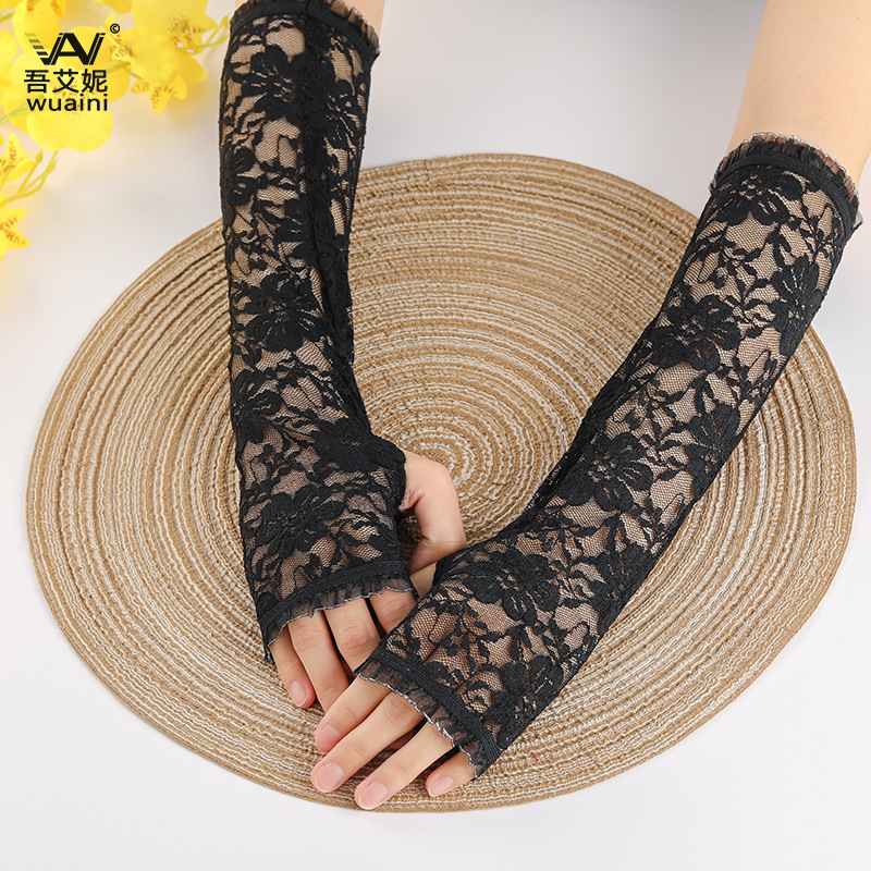 韓国のファッションの優雅な薄いタイプの女性の日焼け止めレースの手袋の夏の黒色のセクシーな新婦の結婚式の結婚の卸売り
