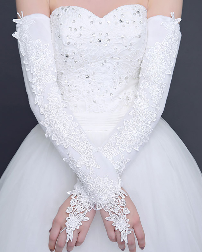 花嫁手袋フランス復古レース長型手袋結婚糸ドレスアクセサリー造形旅行写真白い手袋