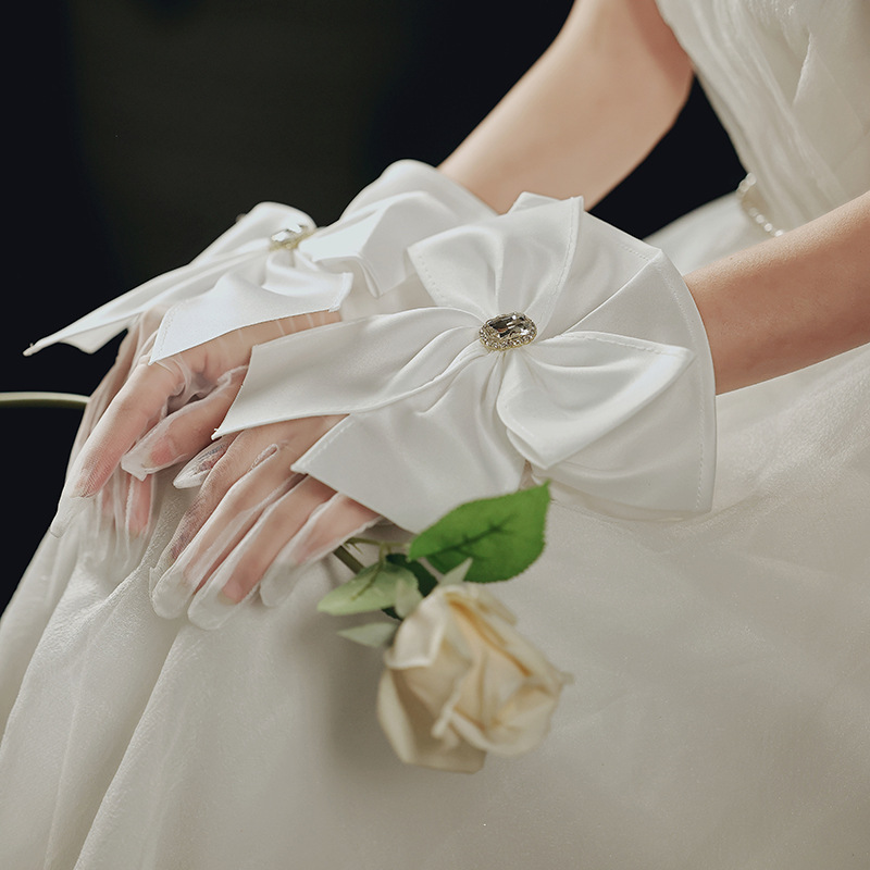 ウェディング手袋花嫁ウェディングドレス写真写真写真森系サテン蝶宝石ドリル日焼け止め手袋1120